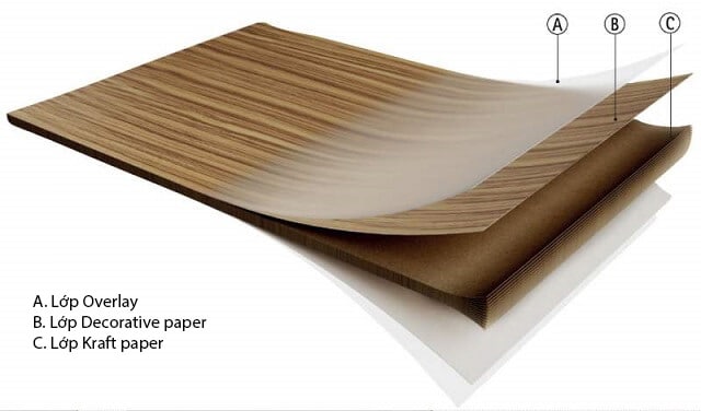 Laminate được chế tạo theo công nghệ HPL, cơ bản gồm 3 lớp: Overlay (lớp màng phủ bên ngoài), Decorative Paper (lớp phim tạo màu mỹ thuật) và Kraft Paper (lớp giấy nền). Dưới áp suất và nhiệt độ cao, sự liên kết giữa ba lớp trở nên chặt chẽ, đặc biệt kết hợp với keo laminate chuyên dụng, tạo nên sự ổn định và vững chắc cao.